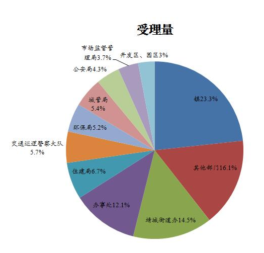 1、本月涉及66个承办单位中的50个,工单数量排名前十位的乡镇、部门(单位):靖城街道办210件、城南办事处111件、住建局97件、交通巡逻警察大队82件、城管局78件、环保局76件、公安局63件、斜桥镇62件、马桥镇60件、市场监督管理局54件。